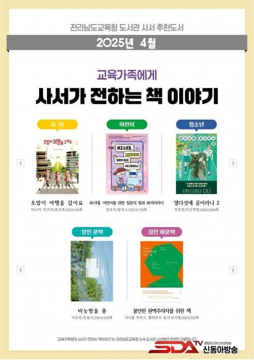 4¿ù Ãßõ µµ¼´Â À¯¾Æ ´ë»ó¡ºÃʹäÀÌ ¿©ÇàÀ» °¬¾î¿ä¡»(Ÿ³ªÄ« ŸÃ÷¾ß Àú), ¾î¸°ÀÌ ´ë»ó¡ºAI½Ã´ë, ¾î¸°À̸¦ À§ÇÑ Áú¹®ÀÇ Èû°ú AI¸®ÅÍ·¯½Ã¡»(Á¤À¯¸® Àú), û¼Ò³â ´ë»ó¡º¿´Ù¼¸¿¡ °õÀ̶ó´Ï 2¡»(ÃßÁ¤°æ Àú), ¼ºÀÎ ´ë»ó ¹®ÇÐ ºÐ¾ßÀÇ¡ººñ´°¹æ¿ï Æþ¡»(ÀÌÀ¯¸® Àú), ¼ºÀÎ ´ë»ó ºñ¹®ÇÐ ºÐ¾ßÀÇ¡ººÒ¾ÈÇÑ ¿Ïº®ÁÖÀÇÀÚ¸¦ À§ÇÑ Ã¥¡»(¸¶ÀÌŬ ÅõÈ÷±×, Ŭ¶ó¸®»ç ¿Ë Àú)±îÁö ´Ù¼¸ ±ÇÀÌ ¼±Á¤µÇ¾ú´Ù.