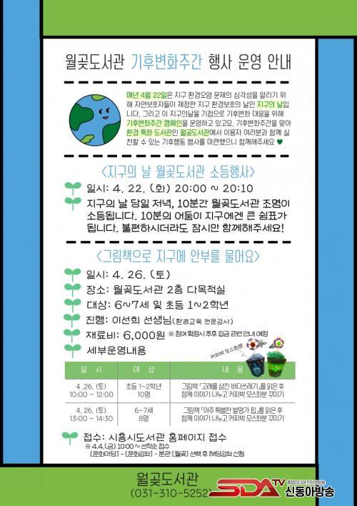 [½Åµ¿¾Æ¹æ¼Û ½ÃÈï½Ã=À̽ŵ¿±âÀÚ] ½ÃÈï½ÃÀÇ È¯°æ Ưȭ µµ¼­°üÀÎ ¿ù°ùµµ¼­°üÀÌ ¡®Áö±¸ÀÇ ³¯(4¿ù 22ÀÏ)¡¯°ú ¡®±âÈĺ¯È­ÁÖ°£¡¯À» ¸Â¾Æ »ýȰ ¼Ó Áö±¸¸¦ À§ÇÑ ½ÇõÀ» ÁÖÁ¦·Î ȯ°æ °ü·Ã Çà»ç¸¦ ¿î¿µÇÑ´Ù.