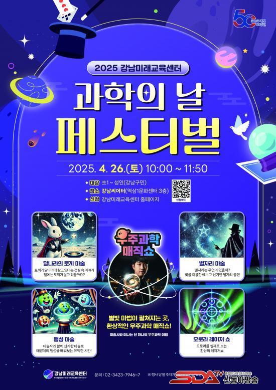 °úÇÐÀÇ ³¯ Çà»çÀÎ ¡®¿ìÁÖ°úÇÐ ¸ÅÁ÷¼î¡¯´Â 4¿ù 26ÀÏ ¿ÀÀü 10½ÃºÎÅÍ 11½Ã 50ºÐ±îÁö ¿ª»ï1¹®È¼¾ÅÍ 3Ãþ °³²¾¾¾îÅÍ¿¡¼ ¿¸°´Ù. ÃʵîÇлýºÎÅÍ ¼ºÀαîÁö Âü¿©ÇÒ ¼ö ÀÖÀ¸¸ç, ´Þ³ª¶óÀÇ Åä³¢ ¸¶¼ú, º°ÀÚ¸® ¸¶¼ú, ¿À·Î¶ó ·¹ÀÌÀú ¼î, Ç༺ ¸¶¼ú µîÀÇ ÇÁ·Î±×·¥ÀÌ À̾îÁö¸ç Áß°£¿¡ °ü°´ Âü¿© ½Ã°£À¸·Î Èï¹Ì¸¦ µ¸¿î´Ù.