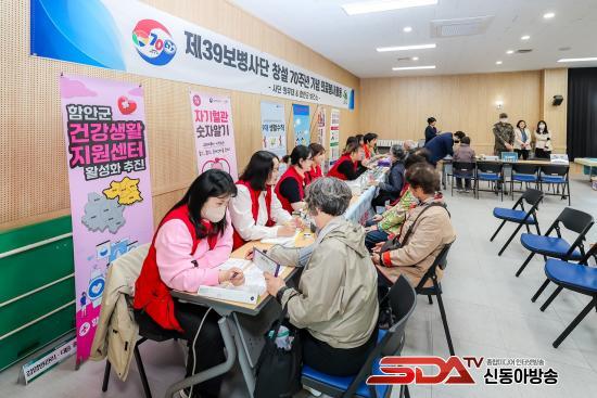 À̹ø Çà»ç´Â 39º¸º´»ç´ÜÀÇ 70Áֳ⠱â³ä°ú ÇԾȺδë ÀÌÀü 10ÁÖ³âÀ» ±â³äÇϱâ À§ÇØ Áö³ 9~10ÀÏ 2Àϰ£ ÃßÁøµÆ´Ù. 39º¸º´»ç´ÜÀº ±ºÀǰü°ú Àǹ« ¿ä¿ø µî 20¿© ¸íÀÇ ÀÇ·áÁö¿øÆÀÀ» ±¸¼ºÇØ ³»°ú¡¤Á¤Çü¿Ü°ú¡¤Ä¡°ú µî ºÐ¾ßº°·Î ³ª´² 170¸íÀÇ ±ººÏ¸é¹Î¿¡°Ô °Ç° °ËÁø°ú ¹°¸®Ä¡·á, ½ºÆ®·¹½º°Ë»ç, ü¼ººÐ ºÐ¼® µî ÀÇ·áÁö¿øÀº ¹°·Ð °Åµ¿ÀÌ ¾î·Á¿î ³ë¾àÀÚ¿Í ±³ÅëÀÌ ºÒÆíÇÑ ÁֹεéÀ» À§ÇØ ¼ö¼Û¹ö½º¸¦ ¿î¿ëÇØ ÀÇ·áÁö¿øÀ» Á» ´õ ¼ö¿ùÇÏ°Ô ¹ÞÀ» ¼ö ÀÖµµ·Ï Çß´Ù.
