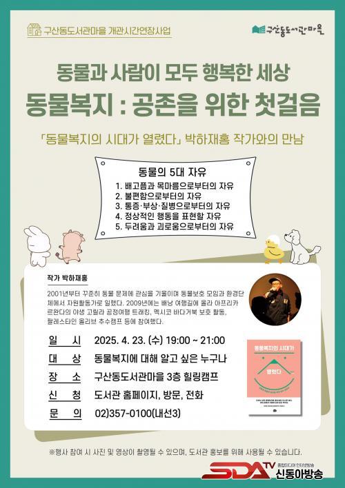 [½Åµ¿¾Æ¹æ¼Û ÀºÆò±¸=À̽ŵ¿±âÀÚ] ¼­¿ï ÀºÆò±¸´Â ±¸»êµ¿µµ¼­°ü¸¶À»¿¡¼­ µµ¼­°üÀÇ ³¯¡¤µµ¼­°ü ÁÖ°£À» ¸Â¾Æ ¡®µ¿¹°º¹ÁöÀÇ ½Ã´ë°¡ ¿­·È´Ù¡¯ ¹ÚÇÏÀçÈ« ÀúÀÚ¿ÍÀÇ ¸¸³²À» ¿À´Â 23ÀÏ¿¡ ¿ÀÈÄ 7½Ã¿¡ °³ÃÖÇÑ´Ù°í ¹àÇû´Ù.