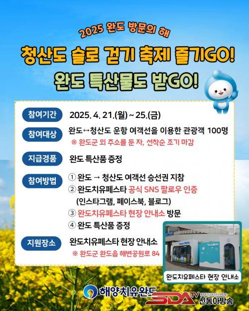 À̺¥Æ® Âü¿© ´ë»óÀڴ û»êµµ ¿©°´¼± ½Â¼±±ÇÀ» ¼ÒÁöÇÑ °ü±¤°´(¿Ïµµ±º ¿Ü Ÿ Áö¿ª¿¡ ÁÖ¼Ò¸¦ µÐ ÀÚ)À̸ç, 4¿ù 21ÀϺÎÅÍ 26ÀϱîÁö 5Àϰ£ ¼±Âø¼ø 100¸í¿¡°Ô Ư»êǰÀ» ÁõÁ¤ÇÒ °èȹÀÌ´Ù.