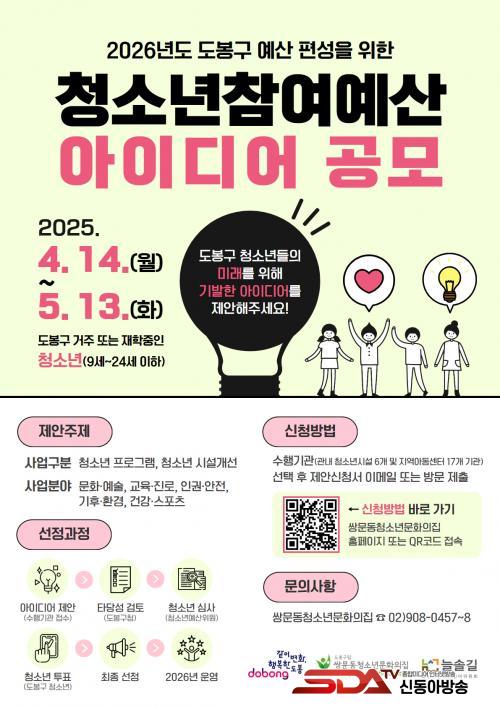 Á¢¼öµÈ Á¦¾ÈÀº °ü·Ã ºÎ¼ÀÇ Å¸´ç¼º °ËÅä, û¼Ò³âÂü¿©À§¿øÈ¸ ½ÉÀÇ, û¼Ò³â ÅõÇ¥, ¾î¸°ÀÌ¡¤Ã»¼Ò³âÀÇȸ ½ÉÀǸ¦ °ÅÄ¡°Ô µÈ´Ù. À̸¦ ÅëÇØ ÃÖÁ¾ ¼±Á¤µÈ »ç¾÷Àº ±¸ÀÇȸ ½ÂÀÎÀ» °ÅÃÄ 2026³âµµ ¿¹»êÀ¸·Î Æí¼ºµÈ´Ù.