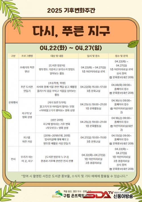 À̹ø ±âÈĺ¯È ÁÖ°£ Çà»ç´Â Áֹε鿡°Ô ±âÈĺ¯ÈÀÇ ½É°¢¼ºÀ» ¾Ë¸®°í ȯ°æ º¸È£ÀÇ Á߿伺À» °Á¶Çϱâ À§ÇØ ¸¶·ÃµÆ´Ù.