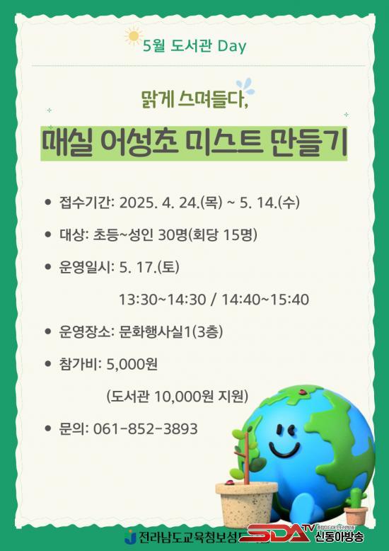 5¿ù¿¡´Â Á¦Ã¶ ¸Å½Ç°ú ¾î¼ºÃʸ¦ Ȱ¿ëÇÑ Ãµ¿¬ ¹Ì½ºÆ® ¸¸µé±â üÇèÀÌ ¸¶·ÃµÇ¾î ÀÖ´Ù. ÇöÀç Àü³²±³À°Ã»º¸¼ºµµ¼°ü ´©¸®Áý¿¡¼ ¿Â¶óÀÎ Á¢¼ö¸¦ ÁøÇà ÁßÀ̸ç, Á¢¼ö¸¸ ÇÏ¸é ´©±¸³ª Âü¿©ÇÒ ¼ö ÀÖ´Ù.