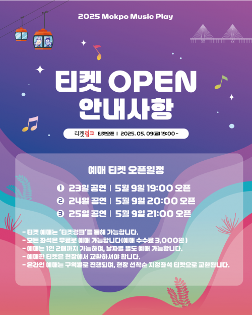 À̹ø °ø¿¬Àº Àü¼® ¹«·áÀ̳ª 3,000¿øÀÇ ¿¹¸Å ¼ö¼ö·á°¡ º°µµ ºÎ°úµÇ¸ç, ¿¹¸Å´Â 1ÀÎ 2¸Å±îÁö °¡´ÉÇÏ´Ù. ¿Â¶óÀÎ ¿¹¸Å´Â ±¸¿ªº°·Î ÁøÇàµÇ°í, ¿¹¸ÅÀÚ´Â ÇöÀå¿¡¼ ¼±Âø¼øÀ¸·Î ÁöÁ¤Á¼® ƼÄÏÀ¸·Î ±³È¯ÇØ¾ß ÇÑ´Ù.