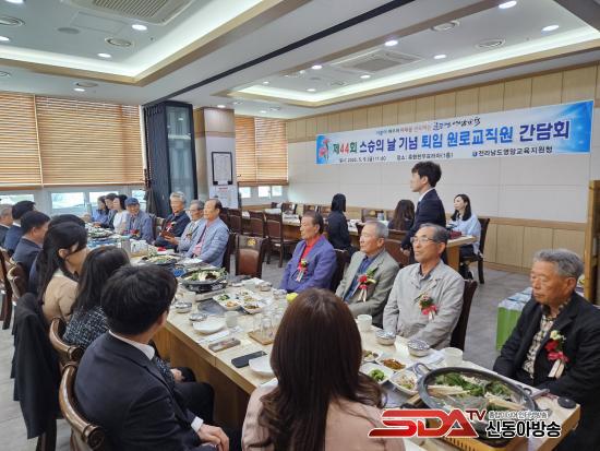 [½Åµ¿¾Æ¹æ¼Û Àü³²¿µ¾Ï=À̽ŵ¿±âÀÚ] ¿µ¾Ï±³À°Áö¿øÃ»Àº Á¦44ȸ ½º½ÂÀÇ ³¯À» ¸Â¾Æ ±³À°°è ¿ø·ÎµéÀÇ °æÇè°ú ÁöÇý¸¦ °øÀ¯ÇÏ°í ½º½Â Á¸°æ dzÅ並 Á¶¼ºÇϱâ À§ÇØ 5¿ù 9ÀÏ(±Ý), ¿µ¾Ï Áö¿ª Ãâ½Å ÅðÁ÷ ±³Á÷¿øµéÀ» ÃÊûÇÏ¿© °£´ãȸ¸¦ ¼º°øÀûÀ¸·Î °³ÃÖÇß´Ù.