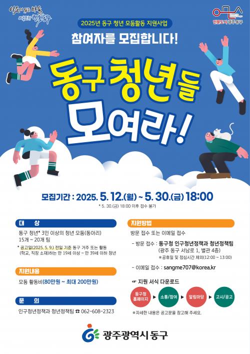 [½Åµ¿¾Æ¹æ¼Û=±èÀçÂù±âÀÚ] ±¤ÁÖ µ¿±¸(ûÀå ÀÓÅÃ)´Â ¿À´Â 30ÀϱîÁö ¡®Ã»³â ¸ðµÒȰµ¿ Áö¿ø»ç¾÷¡¯¿¡ Âü¿©ÇÒ µ¿±¸ û³â ¸ðµÒ(µ¿¾Æ¸®)À» ¸ðÁýÇÑ´Ù°í ¹àÇû´Ù.