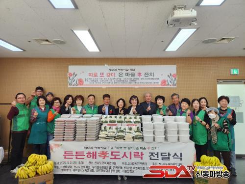 1ºÎ ±â³ä½ÄÀº Ä«³×ÀÌ¼Ç ´Þ¾Æµå¸®±â·Î ½ÃÀÛÇÏ¿© Áö¿ª»çȸ¿¡ ¸ð¹üÀÌ µÇ´Â ÀåÇѾî¹öÀÌ¿¡°Ô ǥâÀ» ¼ö¿©ÇÏÇß´Ù. 2ºÎ È¿ ÀÜÄ¡´Â »õ¸¶À»ºÎ³àȸ¿¡¼ Á¤¼º²¯ ÁغñÇÑ ÀÜÄ¡ À½½ÄÀ» ÇÔ²² ³ª´³´Ù. ¶ÇÇÑ, °ü³» ¾÷üÀÎ »ó·Ï½Ç¾÷¿¡¼ ±âÁõÇÑ ¾ç¸»°ú ¶±À» ¸ðµç ¾î¸£½Å²² ±â³äǰÀ¸·Î Àü´ÞÇß´Ù.