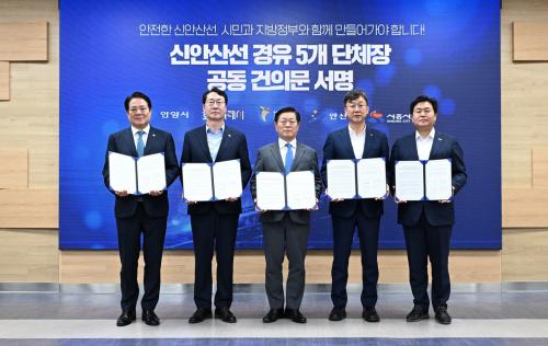 ¶ÇÇÑ, 5°³ ÁöÀÚü ½ÃÀåµéÀº ¡°À̹ø °øµ¿ °ÇÀǸ¦ ÅëÇØ ½Å¾È»ê¼± °Ç¼³»ç¾÷ÀÇ ½Ã°ø ¾ÈÀü¼º°ú ½Ã¹ÎµéÀÇ ½Å·Ú¸¦ ȸº¹Çϰí, ½Å¾È»ê¼±ÀÌ ±¹°¡¿Í Áö¹æÀÚÄ¡´Üü°¡ Çù·Â »ó»ýÇÑ ±¹Ã¥»ç¾÷ÀÇ ¸ð¹ü»ç·Ê°¡ µÉ ¼ö ÀÖµµ·Ï ÃÖ¼±À» ´ÙÇϰڴ١±°í ÀÔÀ» ¸ð¾Ò´Ù.