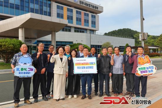 ÁøÁֽóó¾÷ÀδÜüÇùÀÇȸ´Â ¡°¾ÈÀüÇÑ ³óÃÌÀÏÅÍ! ¿ì¸® ÇÔ²² ½ÇÃµÇØ¿ä¡±¸¦ ¿ÜÄ¡¸ç ³óÀÛ¾÷ Áß ¹ß»ýÇÒ ¼ö ÀÖ´Â ÀçÇØ¸¦ ¿¹¹æÇϰí, Æø¿°´ëºñ ¾ÈÀü ¼öÄ¢°ú ³óÀÛ¾÷ ¾ÈÀüÀÇ Á߿伺À» ¾Ë¸®´Âµ¥ ÃÖ¼±À» ´ÙÇϰڴٴ ¾ÈÀü ½Çõ ÀÇÁö¸¦ ´ÙÁ³´Ù.