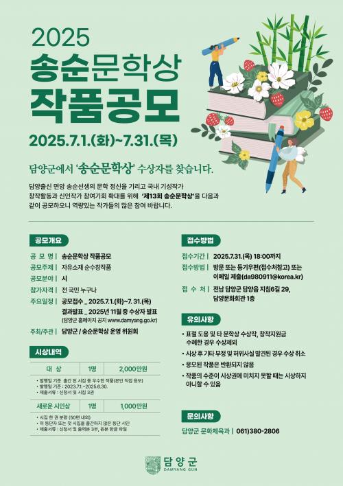 À̹ø °ø¸ð´Â Àü±¹ÀÇ ±â¼º¡¤½Å¿¹ ½ÃÀÎÀ» ´ë»óÀ¸·Î ÁøÇàµÇ¸ç, Á¢¼ö ±â°£Àº 7¿ù 31ÀϱîÁö´Ù.