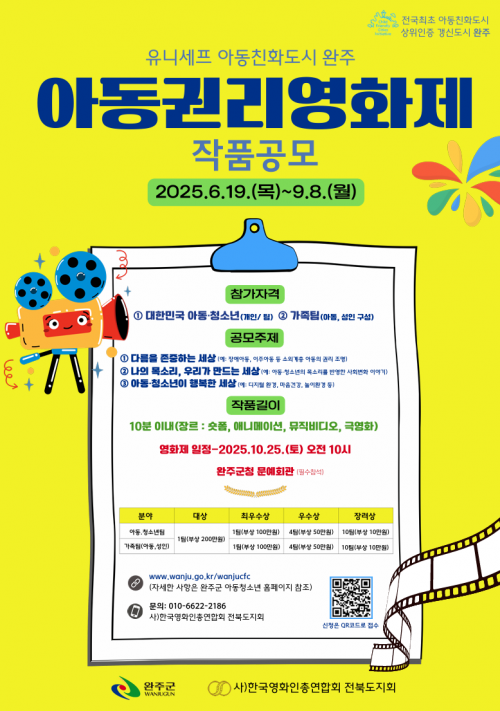 °ø¸ðÀü¿¡¼ ¼±Á¤µÈ ÀÛǰÀº 10¿ù 25ÀÏ ¿ÏÁÖ±ºÃ» ÀÏ¿ø¿¡¼ ¿¸®´Â ¾Æµ¿±Ç¸®¿µÈÁ¦¿¡ ÃÊûµÇ¾î »ó¿µµÉ ¿¹Á¤ÀÌ´Ù. ÀÚ¼¼ÇÑ ³»¿ëÀº ¿ÏÁÖ±º ¾Æµ¿Ã»¼Ò³âȨÆäÀÌÁö(www.wanju.go.kr/wanjucfc)¸¦ ÂüÁ¶ÇÏ¸é µÈ´Ù.