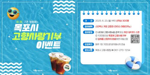 À̹ø À̺¥Æ®¿¡ °üÇÑ ÀÚ¼¼ÇÑ »çÇ×Àº ¸ñÆ÷½Ã °ø½Ä ´©¸®Áý, SNS, ¶Ç´Â ÀüÈ(061-270-1234)¸¦ ÅëÇØ È®ÀÎÇÒ ¼ö ÀÖ´Ù.