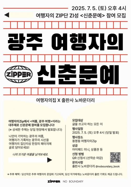 [½Åµ¿¾Æ¹æ¼Û=±èÀçÂù±âÀÚ] ±¤ÁÖ µ¿±¸(ûÀå ÀÓÅÃ)´Â ¿À´Â 5ÀÏ ¿ÀÈÄ 4½Ã ±¤ÁÖ ´ëÇ¥ °ü±¤ Ç÷§Æû ¡®¿©ÇàÀÚÀÇ ZIP¡¯¿¡¼­ °¨¼º ±Û¾²±â ÇÁ·Î±×·¥ ¡®¿©ÇàÀÚÀÇ ZIP´ÜZI¼º–¿©¸§, ±¤ÁÖ ¿©Ç࡯ ½ÅÃá¹®¿¹¸¦ °³ÃÖÇÑ´Ù°í ¹àÇû´Ù.