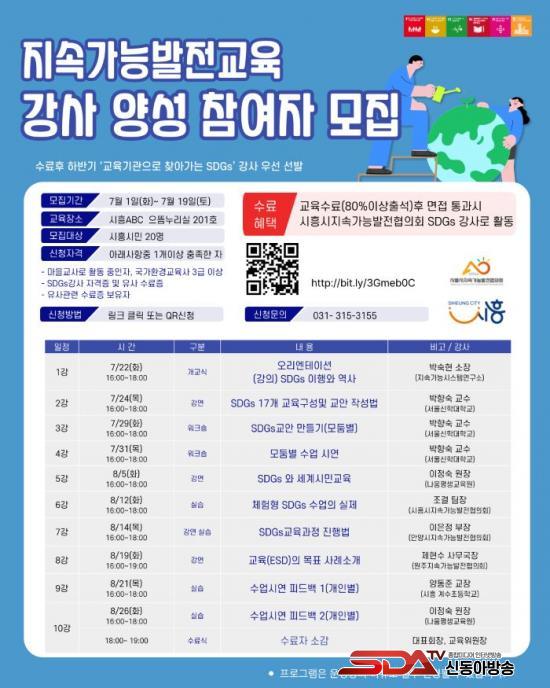 [½Åµ¿¾Æ¹æ¼Û ½ÃÈï½Ã=À̽ŵ¿±âÀÚ] ½ÃÈï½ÃÁö¼Ó°¡´É¹ßÀüÇùÀÇȸ´Â ¿À´Â 7¿ù 22ÀϺÎÅÍ 8¿ù 26ÀϱîÁö ÁøÇàµÇ´Â ¡¸Áö¼Ó°¡´É¹ßÀü±³À° °­»ç ¾ç¼º°úÁ¤¡¹¿¡ Âü¿©ÇÒ ½Ã¹ÎÀ» 7¿ù 19ÀϱîÁö ¸ðÁýÇÑ´Ù.