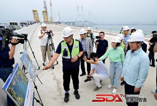 À̾î À¯Á¤º¹ ½ÃÀåÀº Á¦3¿¬·ú±³ °Ç¼³ ÇöÀåÀ» ã¾Æ °øÁ¤ ÇöȲÀ» º¸°í ¹Þ°í Á÷Á¢ ½ÃÂûÇß´Ù. Á¦3¿¬·ú±³´Â ¿µÁ¾µµ¿Í û¶ó±¹Á¦µµ½Ã¸¦ ¿¬°áÇÏ´Â ÇÙ½É ±³·®À¸·Î, ÇöÀç Àüü °øÁ¤·üÀº 85% ¼öÁØÀÌ´Ù. ÀÎõ½Ã´Â 8¿ù±îÁö ÁÖžºÎ »óÆÇ ¼³Ä¡ ¹× ÄÉÀÌºí °ÅÄ¡ ÀÛ¾÷À» ¸¶¹«¸®Çϰí, ¿¬¸»±îÁö ºÎ´ë°ø»ç¸¦ ¿Ï·áÇØ 12¿ù °³ÅëÀ» ¸ñÇ¥·Î Çϰí ÀÖ´Ù.