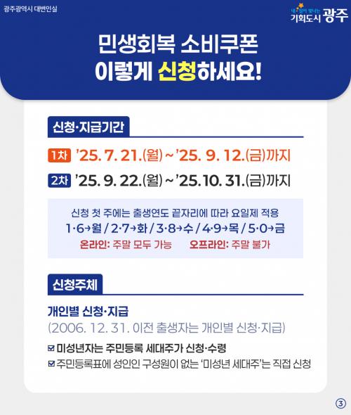 1Â÷ ½ÅûÀº 21ÀϺÎÅÍ ¿À´Â 9¿ù12ÀϱîÁö ÁøÇàµÇ¸ç, ±âÁØÀÏ(6¿ù18ÀÏ) ÇöÀç ±¹³»¿¡ °ÅÁÖ ÁßÀÎ ±¤ÁֽùÎÀÌ ´ë»óÀÌ´Ù. Áö¿ø±Ý¾×Àº ¡ãÀϹݽùΠ18¸¸¿ø ¡ãÂ÷»óÀ§°èÃþ¡¤ÇѺθð°¡Á· 33¸¸¿ø ¡ã±âÃÊ»ýȰ ¼ö±ÞÀÚ 43¸¸¿øÀÌ´Ù.