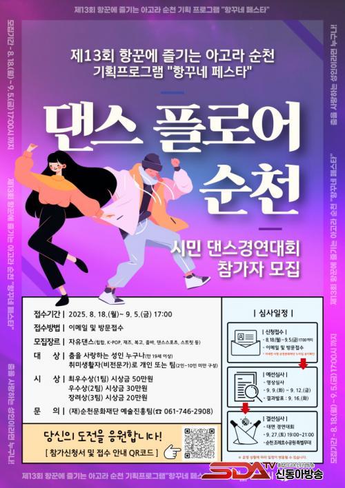 À̹ø¿¡ °³ÃֵǴ ½Ã¹Î ´í½º°æ¿¬´ëȸ¡®´í½º ÇÃ·Î¾î ¼øÃµ¡¯Àº ÃãÀ» »ç¶ûÇÏ´Â Àü ±¹¹Î ¼ºÀÎ ¾Æ¸¶Ãß¾î ´©±¸³ª Âü¿© °¡´ÉÇϸç, ¸ðµç ´í½º ºÐ¾ß¿¡¼ ÃãÀ¸·Î ÀÚ½ÅÀÇ ½Ç·ÂÀ» ¼±º¸ÀÏ ¼ö ÀÖ´Â °³ÀÎ ¶Ç´Â ÆÀÀ̸é Áö¿øÀÌ °¡´ÉÇÏ´Ù.
