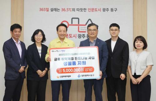 [½Åµ¿¾Æ¹æ¼Û=±èÀçÂù±âÀÚ] ±¤ÁÖ µ¿±¸(ûÀå ÀÓÅÃ)´Â ½Å¿ëȸº¹À§¿øÈ¸ ±¤ÁÖÀü¶óÁ¦ÁÖÁö¿ªº»ºÎ(º»ºÎÀå °­¿ø¼®)°¡ Áö³­ 18ÀÏ µ¿±¸ ±ÝÀ¶ Ãë¾à°èÃþ Áö¿øÀ» À§ÇØ 5¹é¸¸ ¿ø »ó´çÀÇ »ýÇÊǰÀ» Àü´ÞÇß´Ù°í ¹àÇû´Ù.