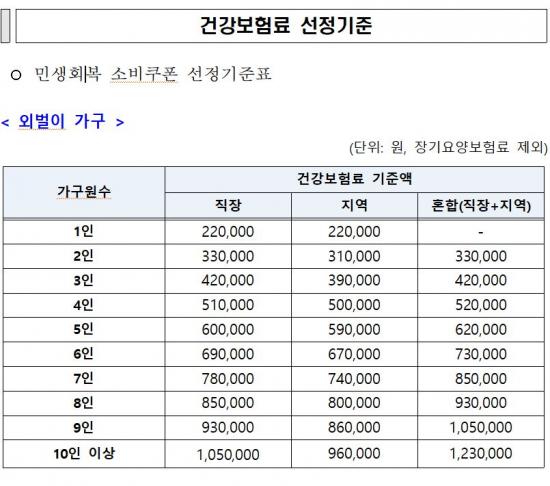 Áö±Þ ´ë»óÀº °¡±¸ ÇÕ»ê ¼Òµæ »óÀ§ 10%¸¦ Á¦¿ÜÇÑ Àü ±¹¹ÎÀ¸·Î, Áö³­ 6¿ù ºÎ°úµÈ °Ç°­º¸Çè·á º»Àκδã±Ý ±âÁØ¾× ÀÌÇÏÀÎ °¡±¸°¡ ÇØ´çµÈ´Ù. ´Ù¸¸, 2024³â Àç»ê¼¼ °ú¼¼Ç¥ÁØ ÇÕ°è¾×ÀÌ 12¾ï ¿ø ÃʰúÀÎ °¡±¸, 2024³âµµ ±Í¼Ó ±ÝÀ¶¼Òµæ ÇÕ°è¾×ÀÌ 2õ¸¸ ¿øÀ» ÃʰúÀÎ °¡±¸´Â °Ç°­º¸Çè·á º»Àκδã±Ý°ú »ó°ü¾øÀÌ Áö±Þ ´ë»ó¿¡¼­ Á¦¿ÜµÈ´Ù.