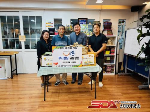 ¹Ú½Â»ï ½ÃÈï½Ã ºÎ½ÃÀå(»çÁø ¿ÞÂʺÎÅÍ ¼¼ ¹øÂ°)Àº Ãß¼®À» ¸Â¾Æ Áö³­ 9¿ù 19ÀÏ ÁßÁõÀå¾ÖÀÎ °ÅÁֽü³ÀÎ ¡®Æò¾ÈÀÇÁý¡¯À» ¹æ¹®ÇØ À§¹®Ç°À» Àü´ÞÇß´Ù