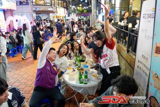 ÀÌÇÊÇü µ¿´ë¹®±¸Ã»Àå(º¸¶ó»ö Á¶³¢)ÀÌ ´ëÇлýµé°ú ÇÔ²² ÃàÁ¦¸¦ Áñ±â°í ÀÖ´Ù.
