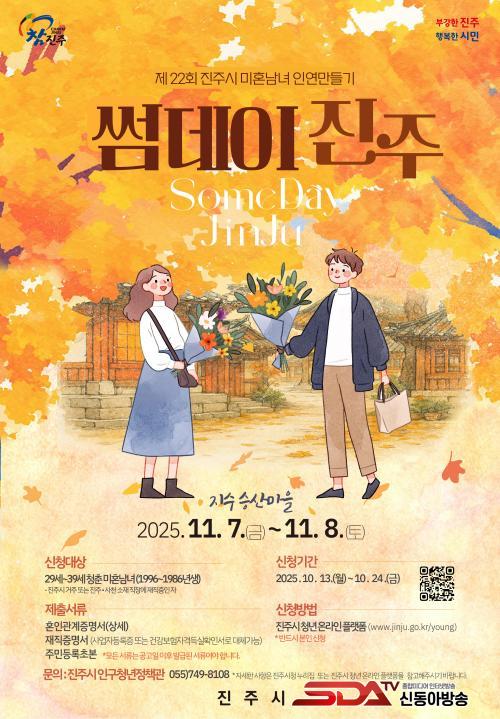 À̹ø Çà»ç´Â ¿À´Â 11¿ù 7Àϰú 8ÀÏ, 1¹Ú 2ÀÏ·Î Áö¼ö ½Â»ê¸¶À» ÀÏ¿ø¿¡¼ ¿¸®¸ç, ºÎÀÚ¸¶À» µ¥ÀÌÆ®, ±×·ì üÇè µî °¡À»ÀÇ Ã»Ã븦 ´À³¢¸ç ÀÚ¿¬½º·´°Ô Àο¬À» ¾Ë¾Æ°¥ ¼ö ÀÖ´Â ÇÁ·Î±×·¥À¸·Î ±¸¼ºÇß´Ù. ¶ÇÇÑ ÁøÁֽô öµµ¹®È°ø¿ø°ú ÁøÁֽø³À̼ºÀڹ̼ú°ü¿¡¼ ¿¸®°í ÀÖ´Â ¡®2025 ÁøÁÖÀüÅë°ø¿¹ºñ¿£³¯·¹¡¯¿Í ¿¬°èÇÑ ÈÄ¼Ó À̺¥Æ®µµ °èÈ¹ÇØ Âü°¡ÀÚ °£ÀÇ Áö¼ÓÀûÀÎ ¸¸³²À» À¯µµÇØ ¡®Àο¬ ¸¸µé±â¡¯¿¡ Àû±Ø ³ª¼³ ¿¹Á¤ÀÌ´Ù.