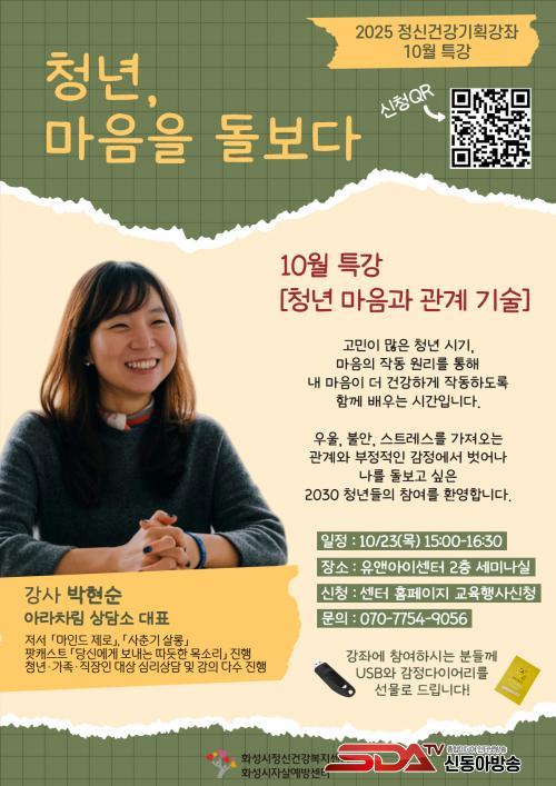 [½Åµ¿¾Æ¹æ¼Û=ÀÌÀçö±âÀÚ] È­¼º½ÃÁ¤½Å°Ç°­º¹Áö¼¾ÅͰ¡ ¿À´Â 23ÀÏ ¿ÀÈÄ 3½Ã À¯¾Ø¾ÆÀ̼¾ÅÍ¿¡¼­ 2025 Á¤½Å°Ç°­ ±âȹ°­Á 10¿ù Ư°­ ¡®Ã»³â, ¸¶À½À» µ¹º¸´Ù¡¯¸¦ °³ÃÖÇÑ´Ù.