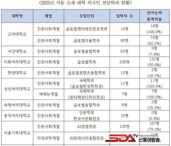 ¡à ¼­¿ï ¼ÒÀç ´ëÇп¡¼­µµ ¿Ü±¹ÀÎ Àü´ãÇаú ¿î¿µÀÌ È®ÀεƴÙ. 2025³â ±âÁØÀ¸·Î °í·Á´ë, ÀÌÈ­¿©´ë µî ¼­¿ï 11°³ ´ëÇп¡ ¿Ü±¹ÀÎ Àü´ãÇаú 16°³°¡ ¼³Ä¡µÆÀ¸¸ç, ÇØ´ç Çаú ÀÔÇлý 886¸í Áß ¾ð¾î´É·Â ±âÁØÀ» ÃæÁ·ÇÑ À¯ÇлýÀº 476¸í(53.7%)À¸·Î Áý°èµÆ´Ù.