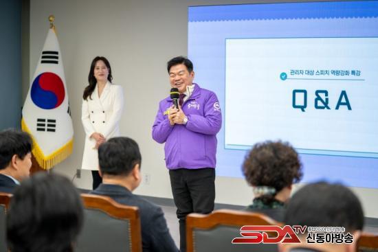 [½Åµ¿¾Æ¹æ¼Û µ¿´ë¹®±¸=À̽ŵ¿±âÀÚ] ¼­¿ï µ¿´ë¹®±¸´Â 14ÀÏ ±¸Ã» 5Ãþ ±âȹ»óȲ½Ç¿¡¼­ ±¸Ã»Àå°ú 6±Þ ÆÀÀå ÀÌ»ó °ü¸®ÀÚ¸¦ ´ë»óÀ¸·Î ¡®½ºÇÇÄ¡ ¿ª·® °­È­ Ư°­¡¯À» ¿­¾ú´Ù. Á¤Ã¥ ¼³¸í°ú ³»ºÎ ¼ÒÅë, ´ë¹Î ÀÀ´ë µî ÇàÁ¤ ÇöÀå¿¡¼­ °ü¸®ÀÚÀÇ ¸» ÇѸ¶µð°¡ °ð Á¶Á÷ÀÇ ½Å·Ú·Î À̾îÁö´Â ¸¸Å­, °øÀû Ä¿¹Â´ÏÄÉÀ̼ÇÀÇ ±âº»±â¸¦ Á¡°ËÇϰí ÇöÀå Àû¿ë·ÂÀ» ²ø¾î¿Ã¸®±â À§ÇÑ ÀÚ¸®¿´´Ù.