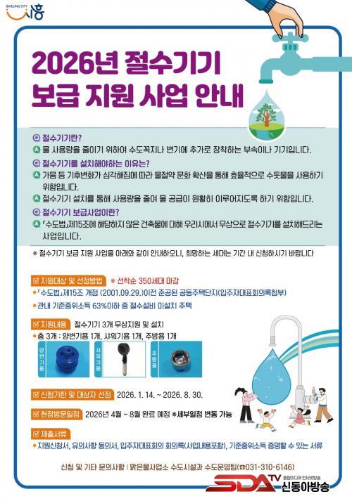 ½ÃÈï½Ã´Â À̹ø Àý¼ö±â±â º¸±Þ Áö¿ø»ç¾÷À» ÅëÇØ ½Ã¹ÎµéÀÌ ¹° Àý¾àÀ» ½ÇõÇÏ°í ±âÈĺ¯È ´ëÀÀ¿¡ µ¿ÂüÇÒ ¼ö ÀÖµµ·Ï Àû±ØÀûÀ¸·Î À¯µµÇÒ °èȹÀÌ´Ù.