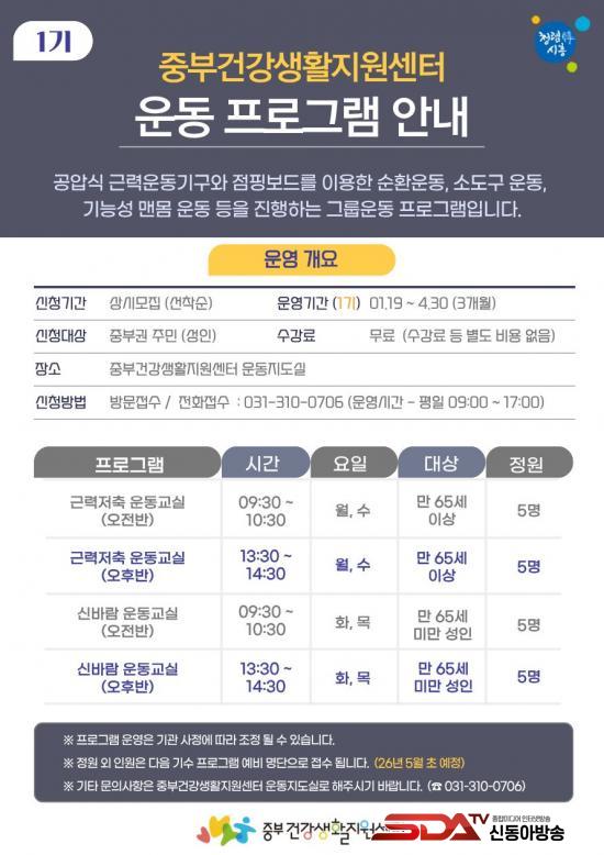 ±Ù·ÂÀúÃà ¿îµ¿±³½ÇÀº ±ÙÀ° °¨¼Ò ¿¹¹æ°ú ü·Â Çâ»ó, ³«»ó»ç°í ¿¹¹æÀ» À§ÇÑ ±ÕÇü¿îµ¿°ú °üÀý ºÎ»ó ¿¹¹æÀ» À§ÇÑ ½ºÆ®·¹Äª Áß½ÉÀÇ ¾ÈÀüÇÑ ¿îµ¿ ÇÁ·Î±×·¥À¸·Î ±¸¼ºµÅ ÀÖ´Ù. ½Å¹Ù¶÷ ¿îµ¿±³½ÇÀº °»³â±â ü·Â ÀúÇÏ¿Í ¸¸¼ºÁúȯ ¿¹¹æÀ» ¸ñÇ¥·Î Çϰí, ¼Òµµ±¸ ¿îµ¿°ú ±â´É¼º ¿îµ¿À» ÅëÇØ °üÀý °¡µ¿¹üÀ§ Áõ°¡, ±â´É °È µî °üÀý Áúȯ ¿¹¹æ¿¡ ÁßÁ¡À» µÎ°í ÀÖ´Ù.