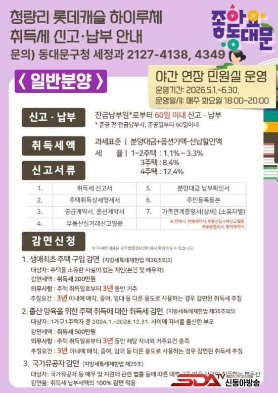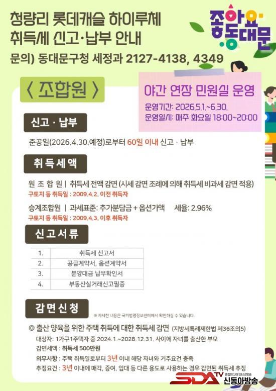 [½Åµ¿¾Æ¹æ¼Û µ¿´ë¹®±¸=À̽ŵ¿±âÀÚ] ¼¿ï µ¿´ë¹®±¸´Â 14Àϰú 15ÀÏ ¾çÀϰ£, ÀÌ´Þ ¸» Áذø ¿¹Á¤ÀΠû·®¸® Á¦7±¸¿ª Àç°³¹ß ¾ÆÆÄÆ® ¡®·Ôµ¥Ä³½½ ÇÏÀÌ·çü¡¯ ÇöÀå¿¡¼ ½Å±Ô ÀÔÁÖ¹ÎÀ» À§ÇÑ ¡®Ã£¾Æ°¡´Â ¸ÂÃãÇü ¼¼¹«»ó´ã¡¯À» ¼ºÈ²¸®¿¡ ¸¶¹«¸®Çß´Ù°í 16ÀÏ ¹àÇû´Ù.