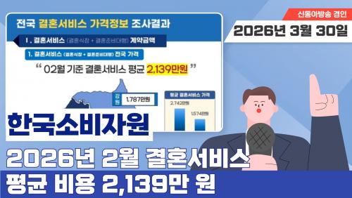 Çѱ¹¼ÒºñÀÚ¿øÀÌ ¹ßÇ¥ÇÑ 2026³â 2¿ù °áÈ¥¼ºñ½º °¡°Ý µ¿Çâ Á¶»ç °á°ú, Àü±¹ 14°³ Áö¿ª¿¡¼ °áÈ¥¼ºñ½º Æò±Õ ºñ¿ëÀº 2,139¸¸ ¿øÀ¸·Î ³ªÅ¸³µ½À´Ï´Ù. ÃÖ±Ù µÎ ´Þ°£ Ç϶ô¼¼ ÀÌÈÄ ´Ù½Ã »ó½Â¼¼¸¦ º¸À̰í ÀÖ½À´Ï´Ù.