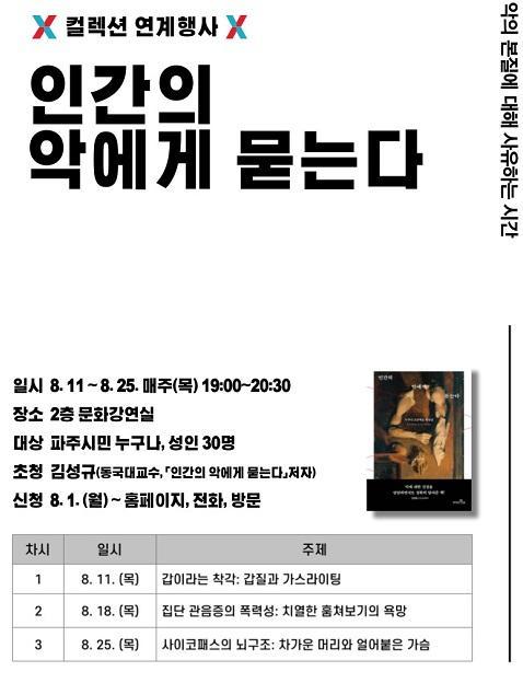 ¡®Àΰ£ÀÇ ¾Ç¿¡°Ô ¹¯´Â´Ù¡¯(Ã¥À̶ó´Â ½ÅÈ)ÀÇ ÀúÀÚÀÎ ±è¼º±Ô ±³¼ö(µ¿±¹´ëÇб³ ¹®ÈÇмú¿ø)´Â 2017³âºÎÅÍ 2019³â±îÁö µ¿±¹´ëÇб³¿¡¼ °ÀÇÇÑ ¡®Á¤½ÅºÐ¼®Çаú ¹®ÇС¯ Ä¿¸®Å§·³À» ¹ÙÅÁÀ¸·Î Àú¼¸¦ ÁýÇÊÇß´Ù.