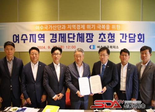 ¿©¼ö»ó°øÈ¸ÀÇ¼Ò ÁÖÃÖ·Î ¿¸° À̹ø °£´ãȸ¿¡¼ Çѹ®¼± ¿©¼ö»ó°øÈ¸ÀÇ¼Ò È¸ÀåÀ» ºñ·ÔÇØ ±è°©¿Â ¿©¼ö¿Àõ»ê¾÷´ÜÁö½Äǰ°¡°ø»ç¾÷Çùµ¿Á¶ÇÕ ÀÌ»çÀå, °¿ë¿ø ¿©¼ö°æ¿µÀÎÇùȸ ȸÀå, ±è°æ¼ö ¿©¼ö»ê´Ü°Ç¼³¾÷ÇùÀÇȸ ȸÀå, À̵¿±Ù ´ëÇÑÀü¹®°Ç¼³Çùȸ¿©¼ö½ÃÇùÀÇȸ ȸÀå, ±èÁ¤È¯ Ⱦç³ó°ø´ÜÁöÇùÀÇȸ ȸÀå, ±è°â ¿©¼ö½Ã¼Ò»ó°øÀο¬ÇÕȸ ȸÀå µî °æÁ¦´ÜüÀåÀº ¿©¼ö±¹°¡»ê´Ü°ú Áö¿ª °æÁ¦°¡ Á÷¸éÇÑ À§±â »óȲÀ» °øÀ¯Çϰí, À̸¦ ±Øº¹Çϱâ À§ÇÑ ½ÇÁúÀû Çù·Â ¹æ¾È¿¡ ´ëÇØ ³íÀÇÇß´Ù.