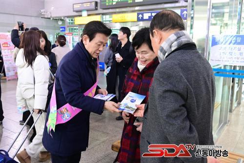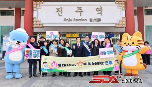 [½Åµ¿¾Æ¹æ¼Û °æ³²ÁøÁÖ=±è¸í¼ö±âÀÚ] ÁøÁֽô 13ÀÏ ¼³ ¸íÀýÀ» ¸Â¾Æ ±Í¼º°´°ú °ü±¤°´¿¡°Ô µû¶æÇÑ È¯¿µ Àλ縦 ÀüÇϰí, º½Ã¶ °ü±¤ ½ÃÁðÀ» ¾ÕµÎ°í ÁøÁÖÀÇ ÁÖ¿ä °ü±¤ ÀÚ¿øÀ» ¾Ë¸®±â À§ÇØ ÁøÁÖ¿ª ÀÏ¿ø¿¡¼­ ¡®¼³ ¸íÀý °ü±¤ È«º¸ Ä·ÆäÀΡ¯À» ½Ç½ÃÇß´Ù.