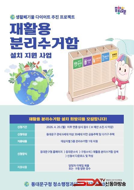 Áö¿ø ´ë»óÀº °ü³» 6¼¼´ë ÀÌ»ó 30¼¼´ë ¹Ì¸¸ÀÇ ¼Ò±Ô¸ð °øµ¿ÁÖÅðú ¿ø·ë µî ´Ù°¡±¸ÁÖÅÃÀÌ´Ù. ´Ù¸¸ ¹ý·ÉÀ̳ª Á¶·Ê¿¡ µû¶ó ºÐ¸®¼ö°Å ½Ã¼³ ¼³Ä¡°¡ Àǹ«ÈµÈ ½ÅÃà °ÇÃ๰Àº ´ë»ó¿¡¼ Á¦¿ÜµÈ´Ù. ±¸´Â ¿ÃÇØ ÃÑ 40°³¼Ò¸¦ ¼±Á¤ÇØ ´ë»óÁöº°·Î 5Á¾ ºÐ¸®¼ö°ÅÇÔÀ» Áö¿øÇÒ °èȹÀÌ´Ù. ½ÅûÀº 4¿ù 20ÀϺÎÅÍ ¿¬Áß »ó½Ã·Î ¹ÞµÇ, ¿¹»êÀÌ ¼ÒÁøµÇ¸é Á¶±â Á¾·áµÈ´Ù. ½ÅûÀÌ ¸¹À» °æ¿ì¿¡´Â Á¢¼ö ¼ø¼¿Í ¼³Ä¡ Çʿ伺, ¼³Ä¡ Àå¼ÒÀÇ ÀûÁ¤¼º µîÀ» ÇÔ²² µûÁ® Áö¿ø ´ë»óÀ» Á¤ÇÒ ¹æÄ§ÀÌ´Ù.