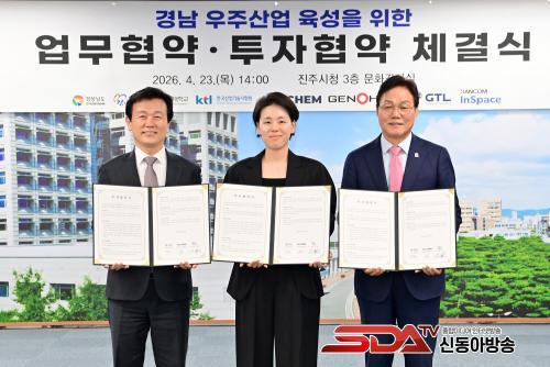 [½Åµ¿¾Æ¹æ¼Û °æ³²ÁøÁÖ=±è¸í¼ö±âÀÚ] °æ»ó³²µµ¿Í ÁøÁֽô 23ÀÏ ÁøÁÖ½Ãû ¹®È­°­Á½ǿ¡¼­ °æ»ó±¹¸³´ëÇб³, Çѱ¹»ê¾÷±â¼ú½ÃÇè¿ø(KTL), ¿ìÁÖ ºÐ¾ß ±â¾÷ 4°³ »ç¿Í ÇÔ²² °æ³² ¿ìÁÖ»ê¾÷ À°¼ºÀ» À§ÇÑ ¾÷¹«Çù¾à ¹× ÅõÀÚÇù¾àÀ» ü°áÇß´Ù.