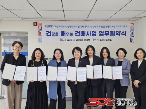 »çÁø= È­¼ºÆ¯·Ê½Ã È¿Ç౸º¸°Ç¼Ò¿Í 5°³ ´ëÇÐ °ü°èÀÚµéÀÌ ¡®°Ç°­À» ¹è¿ì´Â »ç¾÷¡¯ ¾÷¹«Çù¾àÀ» ü°áÇÏ°í ±â³äÃÔ¿µÀ» Çϰí ÀÖ´Ù