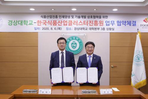 [½Åµ¿¾Æ¹æ¼Û=Á¤¿µ¼÷ ±âÀÚ] ±¹¸³ °æ»ó´ëÇб³(GNU¤ýÃÑÀå ±Ç¼ø±â)´Â ½ÄǰºÐ¾ßÀÇ ÀÎÀç ¾ç¼º°ú ±â¾÷ÀÇ ±â¼ú °³¹ßÀ» Áö¿øÇÏ°í ¿ìÈ£ Çù·Â ÁõÁøÀ» µµ¸ðÇϱâ À§ÇÏ¿© Çѱ¹½Äǰ»ê¾÷Ŭ·¯½ºÅÍÁøÈï¿ø(ÀÌ»çÀå À±ÅÂÁø)°ú Áö³­ 8¿ù 6ÀÏ ¿ÀÀü 11½Ã ´ëÇк»ºÎ 3Ãþ »óȲ½Ç¿¡¼­ ¾÷¹«Çù¾àÀ» ü°á¡¦