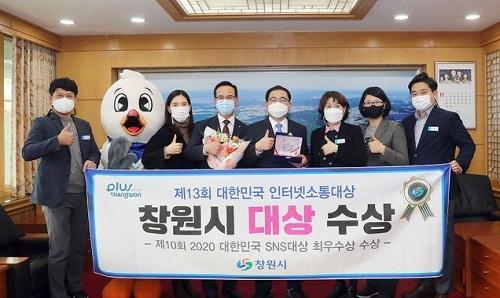[½Åµ¿¹æ¼Û´º½º=Ç㳪¿µ ±âÀÚ] °æ³² â¿ø½Ã´Â ¼­¿ï ÇÁ·¹½º¼¾ÅÍ¿¡¼­ ¿­¸° ¡®2020 Á¦13ȸ ´ëÇѹα¹ ÀÎÅͳݼÒÅë´ë»ó ½Ã»ó½Ä¡¯¿¡¼­ ±âÃÊÀÚÄ¡´Üü ºÎ¹® ´ë»óÀ» ¼ö»óÇß½À´Ï´Ù. ´ëÇѹα¹ ÀÎÅÍ³Ý ¼ÒÅë´ë»óÀº Çѱ¹ ÀÎÅÍ³Ý ¼ÒÅëÇùȸ°¡ ÁÖÃÖÇÏ°í °úÇÐ ±â¼úÁ¤º¸Åë½ÅºÎ¿Í ¹æ¼Û Åë½Å¡¦