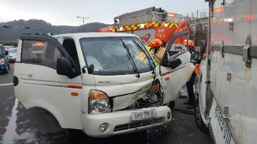 [½Åµ¿¾Æ¹æ¼Û´º½º=À±Çý¸² ±âÀÚ] °æ³² ÁøÁּҹ漭´Â Áö³­ 4ÀÏ ¿ÀÈÄ ÁøÁֽà »óÆòµ¿ ´ë¸²¾ÆÆÄÆ® ¾Õ µµ·Î»ó¿¡¼­ ±³Åë»ç°í¸¦ ´çÇÑ ½Ã¹ÎÀ» ±¸Á¶Çß½À´Ï´Ù. ÁøÁּҹ漭 119±¸Á¶´ë°¡ µµÂøÇßÀ» ¶§ µµ·Î¿¡ Æ÷ÅÍ Æ®·°(1Åæ) 2´ë°¡ ¼­·Î Ãæµ¹ÇØ Â÷·®ÀÇ ¿îÀü¼® ÁÂÃøºÎ ÆÄ¼ÕÀ¸·Î ÀÎÇÑ¡¦