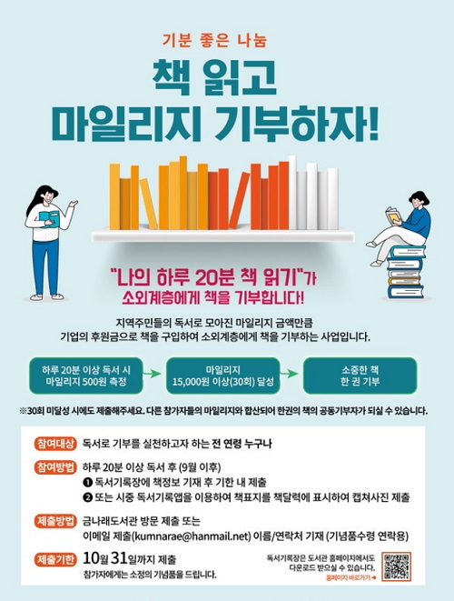 [½Åµ¿¾Æ¹æ¼Û´º½º=ÀÌÁö¿ø ±âÀÚ] ±Ýõ±¸¸³ ±Ý³ª·¡µµ¼­°üÀÌ ¡®¸ÅÀÏ 20ºÐ µ¶¼­±âºÎ¡¯ Ä·ÆäÀÎÀ» ÅëÇØ ¸ðÀÎ ¸¶Àϸ®Áö ±âºÎ±ÝÀ¸·Î ¾Æµ¿µµ¼­¸¦ ±¸ÀÔÇØ Áö¿ª¾Æµ¿¼¾ÅÍ 2°÷¿¡ ±âÁõÇß½À´Ï´Ù. ¸ÅÀÏ 20ºÐ µ¶¼­±âºÎ Ä·ÆäÀÎÀº ¡®Ã¥ Àд µµ½Ã ±Ýõ¡¯ Á¶¼ºÀ» ¸ñÇ¥·Î µ¶¼­¸¦ ½À°üÈ­ÇÏ°í¡¦
