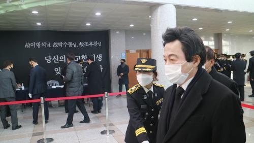 [½Åµ¿¾Æ¹æ¼Û=¿ÀÁöÀº, ÃÖÀ¯³ª ±âÀÚ] ±¹°¡Çõ¸í´ç Çã°æ¿µ ´ëÅë·É È帴 ÆòÅà ³Ãµ¿Ã¢°í È­ÀçÁø¾ÐÀÛÀü°£¿¡ ¼øÁ÷ÇÑ 3¸íÀÇ ¼Ò¹æ°üµéÀÇ ÇÕµ¿ ¿µ°á½Ä(1¿ù8ÀÏ)¿¡ Âü¼®ÇÏ¿´´Ù. ÀÌ ³¯ ¹®ÀçÀÎ ´ëÅë·Éµµ Âü¼®ÇÏ¸ç ¼øÁ÷ÇÑ ¼Ò¹æ°üµé°ú À¯°¡Á·µéÀ» À§·Î ÇÏ¿´´Ù. ÆòÅýà ¹°·ù¼¾ÅÍ ½ÅÃà°ø»ç¡¦
