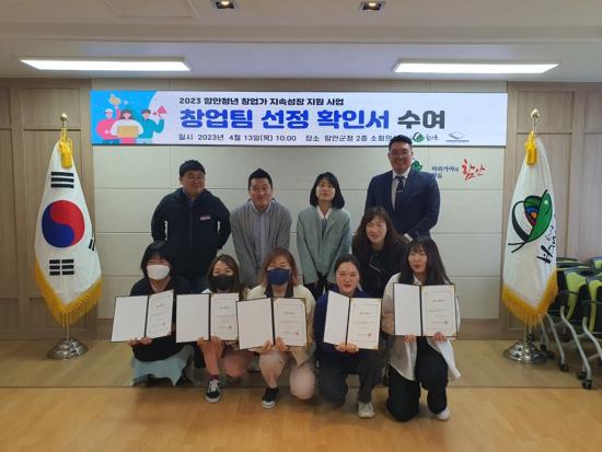 [½Åµ¿¾Æ¹æ¼Û ÇÔ¾È=À̽ŵ¿±âÀÚ]ÇԾȱºÀº Áö³­ 13ÀÏ ¿ÀÀü 10½Ã ÇԾȱºÃ» 2Ãþ ¼ÒȸÀǽǿ¡¼­ ¡®ÇÔ¾Èû³â â¾÷°¡ Áö¼Ó¼ºÀå Áö¿ø¡¯»ç¾÷ â¾÷ÆÀ ¼±Á¤ È®Àμ­ ¼ö¿©½ÄÀ» °¡Á³´Ù. À̳¯ ¼±Á¤ È®Àμ­ ¼ö¿© ÆÀÀº 8ÆÀÀ¸·Î, »êÈÄ ¿ì¿ïÁõ ¹× ¾çÀ° ½ºÆ®·¹½º¸¦ °Þ´Â ±âÈ¥ ¿©¼ºµéÀÇ ¸¶¡¦
