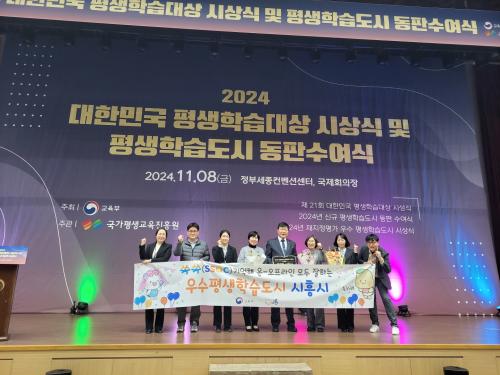 [½Åµ¿¾Æ¹æ¼Û ½ÃÈï½Ã=À̽ŵ¿±âÀÚ] ½ÃÈï½Ã´Â Áö³­ 8ÀÏ Á¤ºÎ¼¼Á¾ÄÁº¥¼Ç¼¾ÅÍ ±¹Á¦È¸ÀÇÀå¿¡¼­ ¿­¸° ¡®2024 ´ëÇѹα¹ Æò»ýÇнÀ´ë»ó ½Ã»ó½Ä°ú Æò»ýÇнÀµµ½Ã µ¿ÆÇ ¼ö¿©½Ä¡¯¿¡¼­ ¡®2024³â ÀçÁöÁ¤Æò°¡ ¿ì¼ö Æò»ýÇнÀµµ½Ã»ó¡¯À» ¼ö»óÇß´Ù. 2024³â Æò»ýÇнÀµµ½Ã ÀçÁöÁ¤Æò°¡´Â 20¡¦