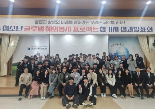 [½Åµ¿¾Æ¹æ¼Û Àü³²=À̽ŵ¿±âÀÚ] Àü¶ó³²µµ±³À°Ã»±¹Á¦±³À°¿øÀº Áö³­ 11¿ù 13ÀÏ ´ëȸÀǽǿ¡¼­ û¼Ò³â ±Û·Î¹ú ÇØ¿ÜºÀ»ç ÇÁ·ÎÁ§Æ®¿¡ Âü°¡ÇÑ °íµîÇлý 60¸í°ú ÇкθðµéÀÌ Âü¿©ÇÏ´Â ¼º°ú¹ßǥȸ¸¦ °³ÃÖÇß´Ù. º» ±Û·Î¹ú ÇØ¿ÜºÀ»ç ÇÁ·ÎÁ§Æ®´Â ±¹Á¦±³À°¿øÀÌ Çлý ¼¼°è½Ã¹Î ¿ª·®¡¦