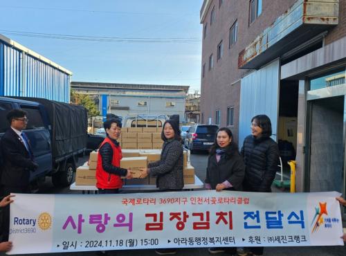 [½Åµ¿¾Æ¹æ¼Û ÀÎõ= À±¹Î½Ä±âÀÚ] ÀÎõ¼­°ù·ÎŸ¸®Å¬·´(ȸÀå ¼ÛÀº°æ)Àº Áö³­ 18ÀÏ(¿ù) ¾Æ¶óµ¿ÇàÁ¤º¹Áö¼¾ÅÍ(µ¿Àå ±èÀºÀÚ)¿¡ ±èÀå±èÄ¡ 100¹Ú½º(10kg)¸¦ Àü´ÞÇÏ¿´´Ù. ÀÎõ¼­°ù·ÎŸ¸®Å¬·´Àº 2023³â 2¿ù ¾Æ¶óµ¿ ÇàÁ¤º¹Áö¼¾ÅÍ¿Í ¹Î°üÇù·Âü°è¸¦ ±¸ÃàÇϰí Áö¿ª»çȸº¹Áö ÁõÁø¡¦